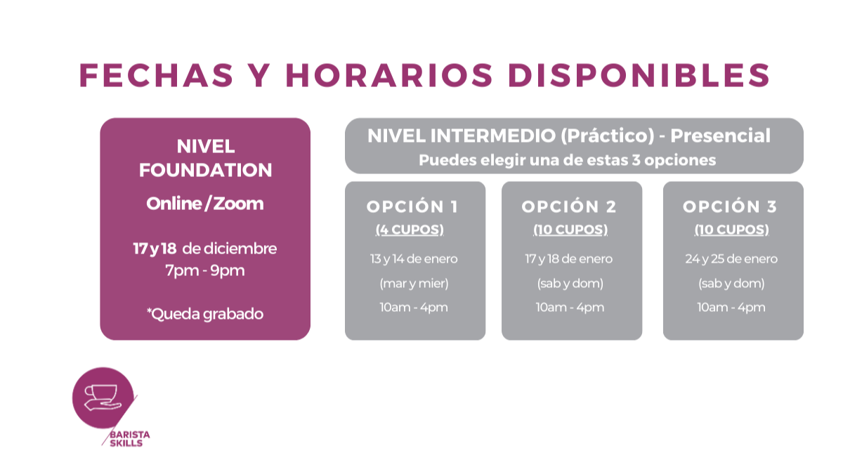 - Doble Certificación de Barista Skills de la Specialty Coffee Association (SCA) - Nivel Principiante + Intermedio